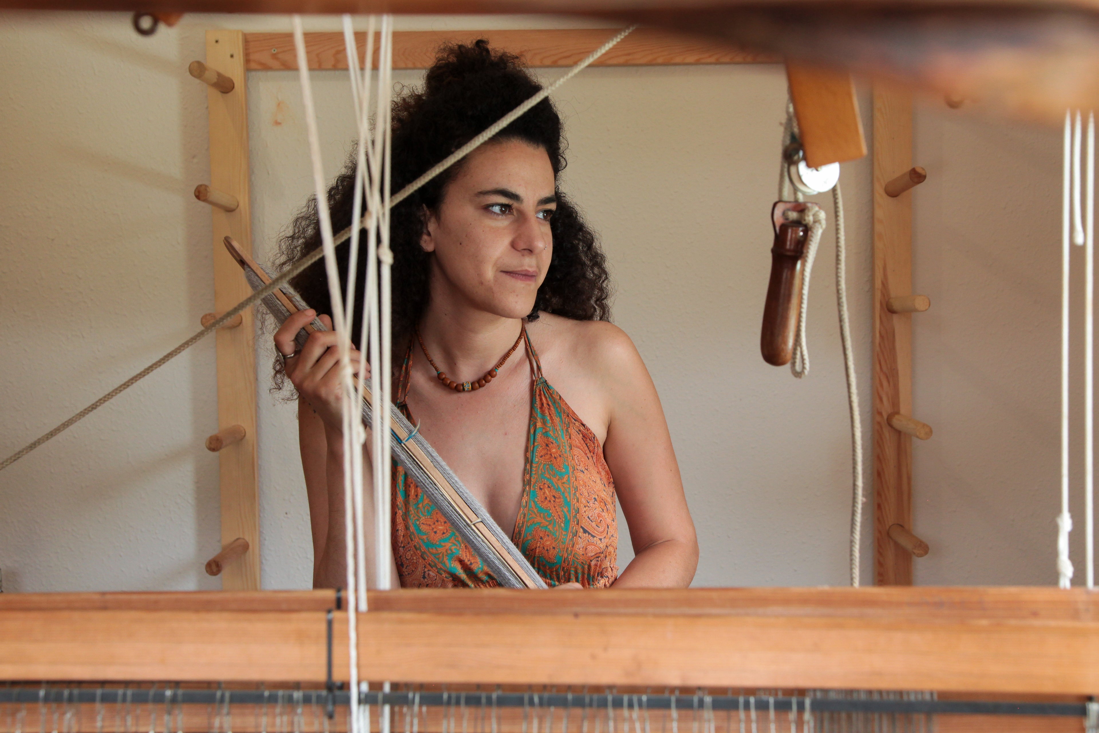 I built my weaving workshop in a small mountain village surrounded by calm and nature — the rhythm of the landscape mirrors the rhythm of the loom. Here, I spend my days weaving, sketching, and designing new textiles that carry traces of my Palestinian identity and my personal experience of migration and memory.